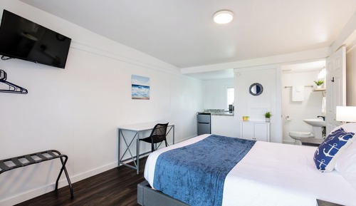Anchor Bay Inn and Suites offers 16 air-conditioned accommodations, which are accessible via exterior corridors and feature hair dryers and complimentary toiletries. These individually furnished accommodations include desks. Memory foam beds feature premium bedding. Guests can surf the web using the complimentary wireless Internet access (speed: 100+ Mbps (good for 1–2 people or up to 6 devices)). Microwaves and coffee/tea makers are provided. Bathrooms include shower/tub combinations. Hypo-allergenic bedding, change of towels, and change of bedsheets can be requested. Housekeeping is provided on request.