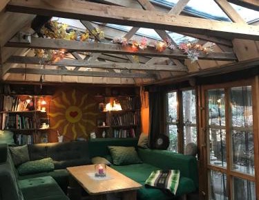 Food & DrinkTea/Coffee makerBathroomToilet paper, Toilet, Towels, Shower, Slippers, Private bathroomKitchenHigh chair, Stovetop, Electric kettle, Refrigerator, Toaster, Cleaning products, Kitchen, Oven, KitchenwareLiving AreaSofa, Sitting area, FireplaceGeneralHeating, Mosquito net, Carpeted, Fire extinguisher, Private entrance, Carbon monoxide detector, Trash cans, Smoke AlarmOutdoorsBarbecue, Outdoor dining area, Outdoor furniture, TerraceViewGarden viewBedroomLinensAccessibilityEntire unit located on ground floorBuilding CharacteristicsDetachedEntertainment & Family ServicesBooks, DVDs or music for children, Board games/puzzlesRoom AmenitiesSocket near the bed, Sofa bedCleanliness & disinfectionHand sanitizer |