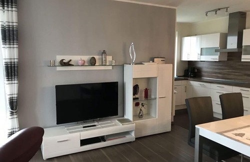 *** www.ostseeferienwohnungenrik.de *** The 'Gorch Fock', 71qm, has a large terrace with a cozy beach chair and garden. The open kitchen is equipped with every comfort. The dining table offers space for 6 people. The cozy living room with fireplace is equipped with a leather seat corner and a television armchair. A large 50-inch LCD TV, Blu-Ray player, as well as games, books and environmental cards are available. In the bathroom there is a spacious shower, bathtub, underfloor heating and an integ. Radio. The apartment has a bedroom with a double bed and another 41 inch flat screen TV. The other bedroom next door consists of 2 single beds. There are electrical shutters on all windows and doors.