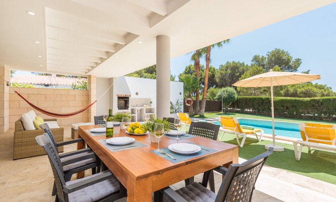 Excellent situation on the south coast, large pool of 55 m2. outdoor barbecue, large living room terrace overlooking the garden and partial sea, high quality inside, large spaces in kitchen and living rooms, free WIFI, air conditioning and heating in all bedrooms. Very close to the BEACH OF BINIBECA, located at 0. 6 km. You can visit walking in less than ten minutes, or in a couple of minutes by car. And at the same distance, there is the TOURIST POPULATION OF CALA TORRET, where you will find bars and restaurants with terraces over the sea. You can also visit just two km away from the beautiful POBLADO DE PESCADORES, and if you want to spend a fun day you will find attractions just two km away from Punta Prima, in the SQUAS PARK, the last and most modern water park in the Island with numerous slides and pools. Ideal for couples and families with children.