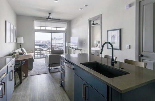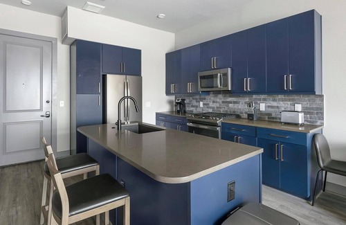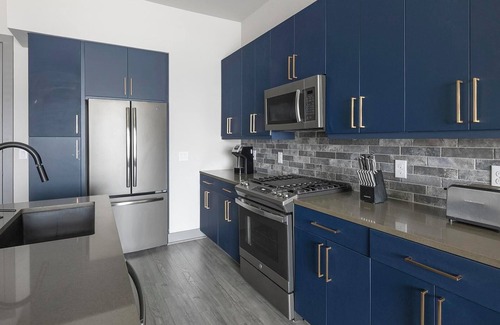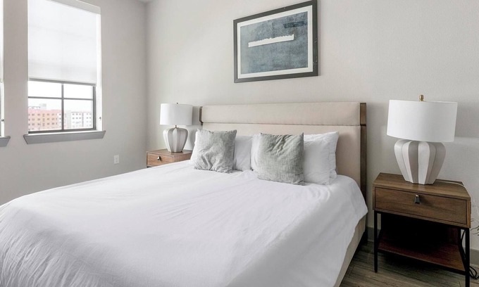 Bellrock Sawyer Yards in Houston, TX offers luxury apartments in a prime location. Each spacious home features high-end finishes, stylish furnishings, modern kitchens, and in-unit laundry for ultimate comfort. Enjoy resort-style amenities including a pool, state-of-the-art fitness center, coworking space, rooftop deck, and a community dog park for your furry friend. Experience the perfect blend of upscale living with flexible terms, ideal for stays of any length.