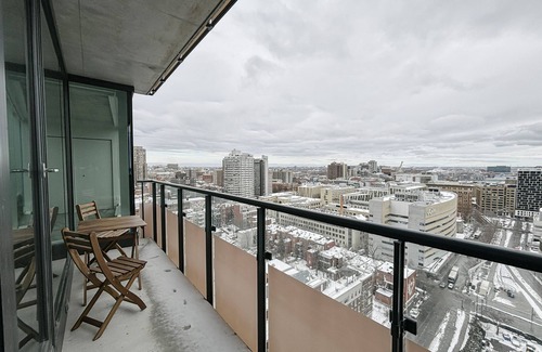 Immerse yourself in downtown Montreal's cultural pulse at Summit's Furnished Apartments. Experience boutique hotel charm, homey comforts, and resort-style amenities all included in your stay, such as a gym, pool, jacuzzi and sauna. Enjoy direct metro access (Place des Arts), 24/7 doorman service, and optional parking. Indulge in two onsite restaurants (Muse and Commodore) and explore nearby cafes and terraces. Steps from iconic landmarks and year-round events, your Montreal adventure awaits!