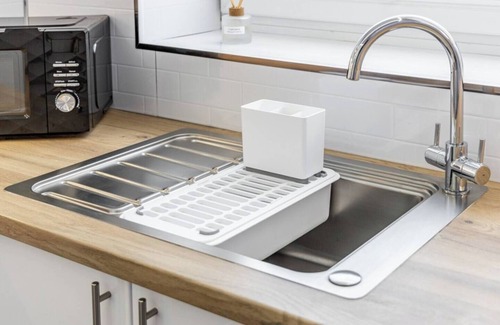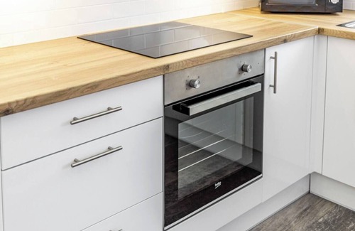 Fully equipped kitchen comes with a fridge-freezer, microwave, electric oven and hob, dishwasher, toaster, kettle, cutting boards, set of knives, plenty of pots/pans/cooking utensils, glasses/plates.