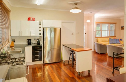 Upon arriving, you'll find parking for two cars on the freshly installed concrete driveway. You enter via the front verandah (a great spot to watch the world go by, wine in hand) into the main open-plan living area. The area features the living room, dining room and kitchen. There's air-conditioning, two ceiling fans, a TV with chromecast - so you can watch your apps - and the kitchen has all the appliances you'd expect plus nespresso coffee machine.