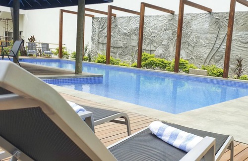 Does the Seafront Apartment Coral Coast have a swimming pool?