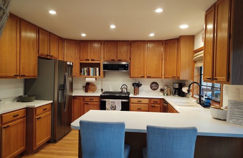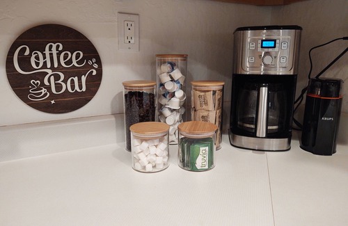 Our chef's kitchen is a culinary paradise, featuring gourmet cookware, high-end appliances, and a 5-burner gas stove with a griddle and convection oven. Enjoy cooking with a stunning view that inspires creativity. Everything you need is thoughtfully appointed, including a coffee bar to start your mornings right. Please let us know if you find something missing, and we will happily address it.