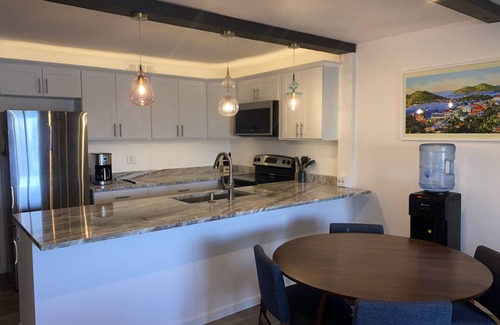 Newly remodeled beach front condo nestled between the St. Thomas Yacht Club and The Ritz Carlton. Each bedroom has it's own en suite bathroom for privacy. Upscale amenities including Tuft and Needle beds, 500 thread count sheets, granite countertops, new washer/dryer and new kitchen appliances. Family oriented beach and pool are steps away from the front door. Generator for continuous power. Minutes from downtown Red Hook where you will find the islands best restaurants and night life, American Yacht Harbor, and the Red Hook Ferry so you can explore the other U.SV.I's and B.V.I's.